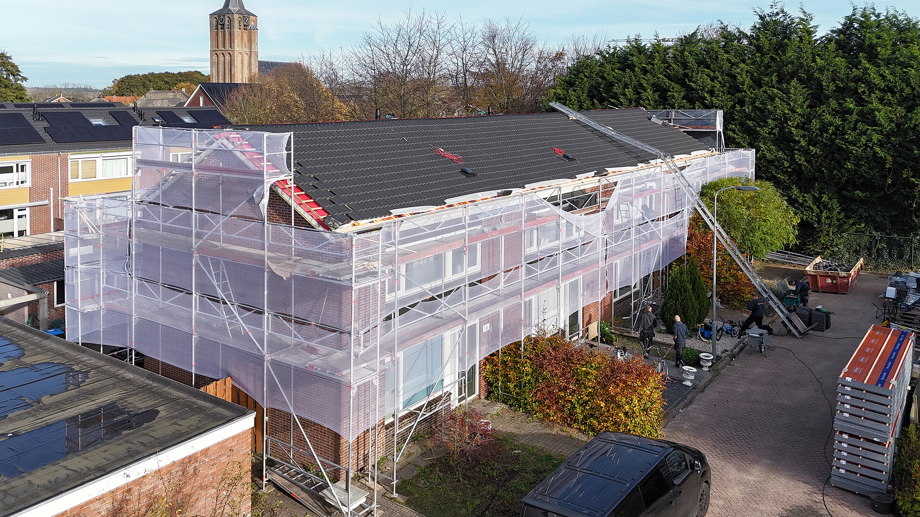 - dakpannen, regenpijpen en dakgoten vervangen;
